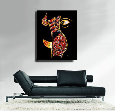Head Turner: Almost everyone who first sees this painting the immediately point to the “penis” they see. In actuality it is not a penis. It is simply a woman walking in front of an admiring man. But because of the distance separating the two, he is close up she is further away; her body blocks his other eye, nose, and the other half of his smile.