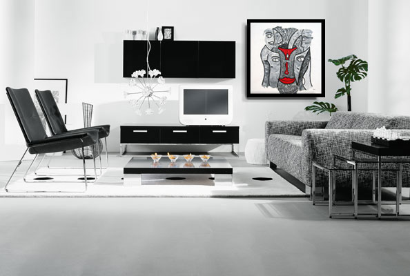 Chastity: In the medieval times when a man was obsessed with his woman and feared she would stray, he would fit her with a chastity belt whenever he was away from her. In the painting I try to show the fear and jealousy of the man, the beauty and charm of the woman and her sexuality, and the ever present third man; the threat that causes the man to “lock” his woman and keep her for himself only.